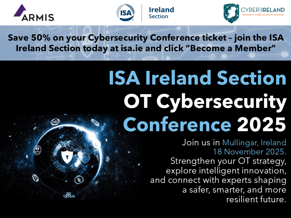 The conference website is available here and will be updated as we get closer to the conference: ISA Ireland OT Conference 2025